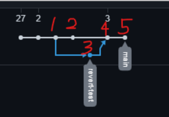 여기서는 revert-test 브랜치에서 있었던 소스는 main에 병합되지 않는다.5번에서 2번에서 revert 한 내역을 다시 revert 하면 1번에서 revert 된 소스는 다시 추가된다.
