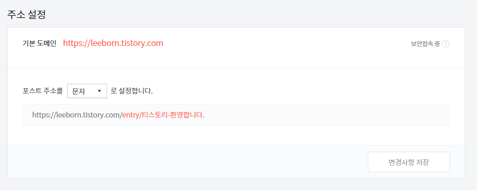 바꾸면 이전 포스팅한 글과 이후 작성하는 글 모두의 주소들이 문자 주소로 변경된다.